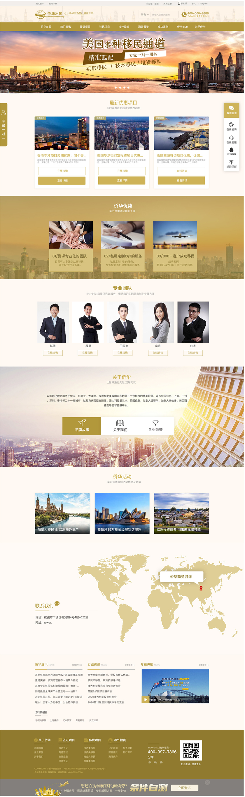 侨华商务咨询有限公司是一家立足于浙江省杭州市,专注于从事全球化海外移民、境外投资、签证留学、海外房产等多元化业务,业务覆盖美国、加拿大、新加坡、希腊、澳大利亚、泰国、加勒比地区等30多个国家及地区的投资咨询服务公司,简称侨华出国。我们拥有一支具有高度凝聚力的精英移民律师、房产资深顾问、海外投资专家等专业团队,我们熟知各国当地法律和移民条例,深...